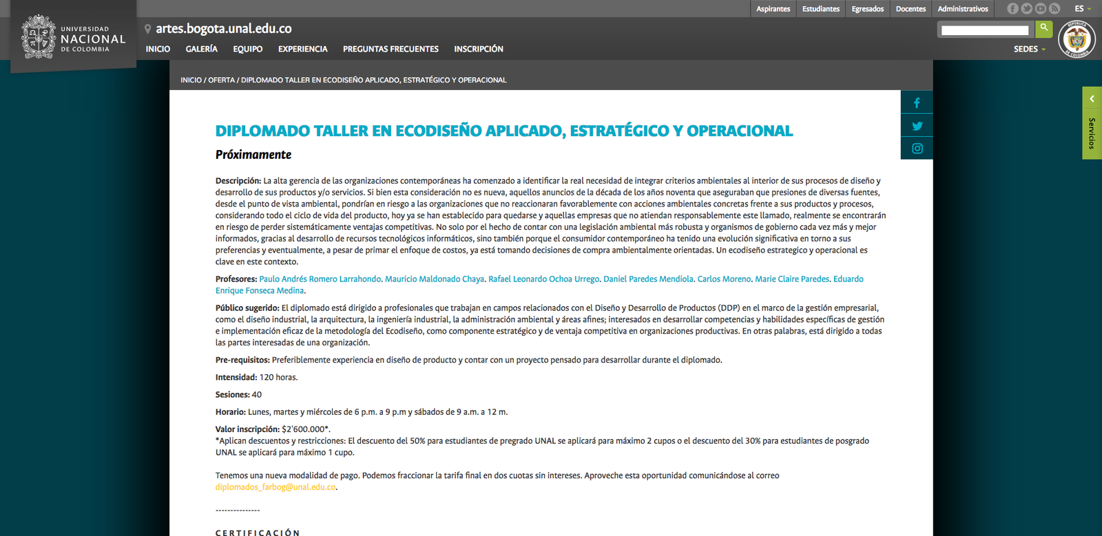 Plantilla web del Programa de Educación Continua y Permanente de la Facultad de Artes de la Universidad Nacional de Colombia
